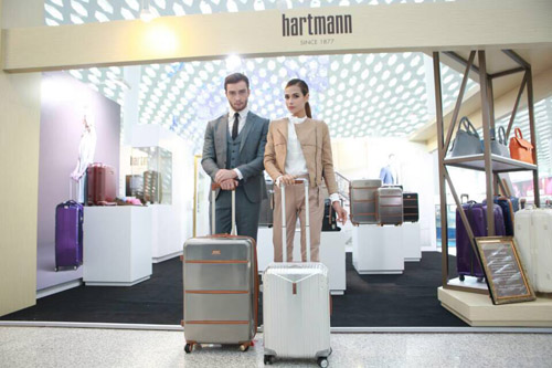 高端箱包平牌:hartmann,全国28个机场店巡回路演,深圳远近模特经纪有限公司派出气质型模特anna,商务型超模art为其演绎。