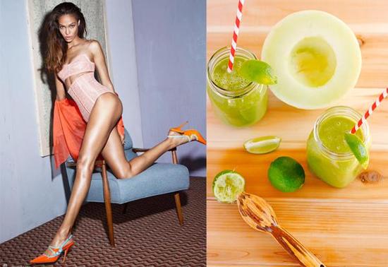 Joan Smalls(琼-斯莫斯) 以控制蛋白质为控制体重的重心。很多时候很多人吃饱了还会吃,而她学习到最重要的是了解自己的蛋白质吸收量。另外,她会喝含疏菜的果汁!